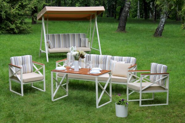 Мягкий элемент: ткань 100% п/э, плотность 220-230г/м2, наполнитель мягкого элемента формовой поролон (толщиной от 80 до 145 мм), наполнитель подушек — синтепон (полотно полиэфирное объемное). Подушки — 2шт.