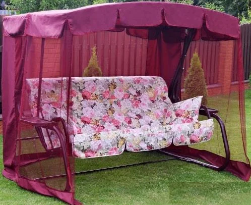 Тент качелей со специальной водоотталкивающей отделкой защитит вас от небольшого дождя или палящего солнца.