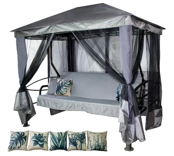 Садовые качели шатер Сиеста, 4-х местные, с москитной сеткой, нагрузка 380 кг.