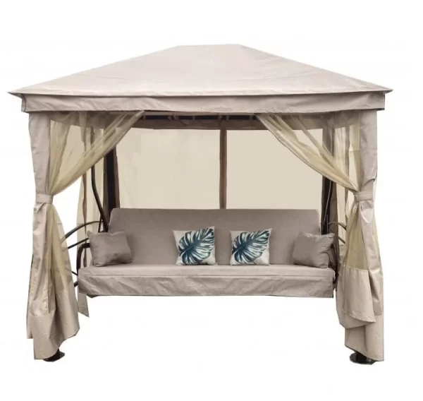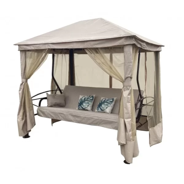 Садовые качели шатер Сиеста Премиум (бежевый)/ 4-х местные/ с москитной сеткой/ нагрузка 380 кг
